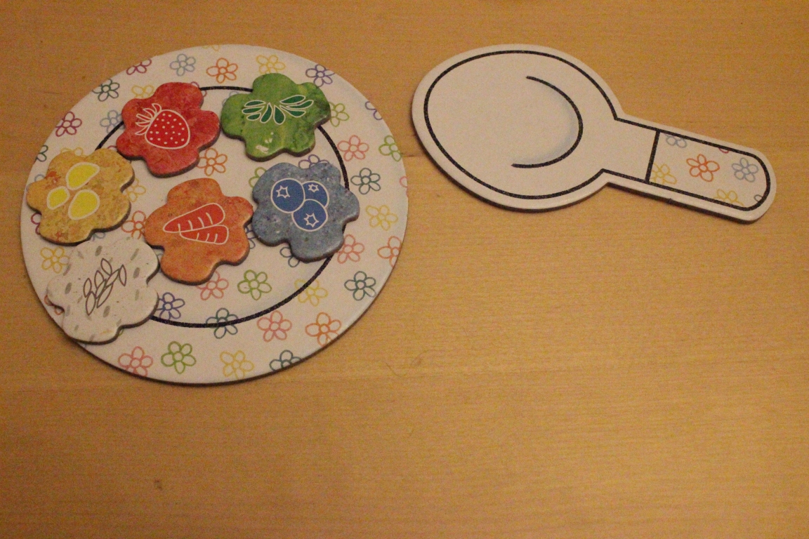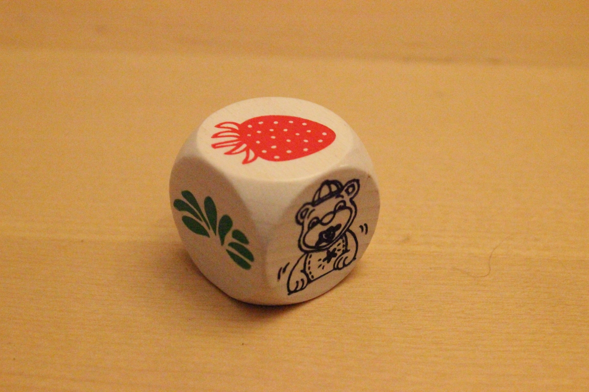 Alle Teile sind aus dicker und robuster Pappe und auch von glatten Oberflächen für kleine Hände gut greifbar. Durch das Austrennen der Pappteile vom Träger entstehen keine scharfen Kanten. Der Würfel ist schön groß und rollt gut. Ideal für kleine Kinderhände. In der Packung fanden wir einen Zettel mit einem Ersatzteil was die Lebensdauer des Materials (Bärchen) laut Hersteller verlängern soll.