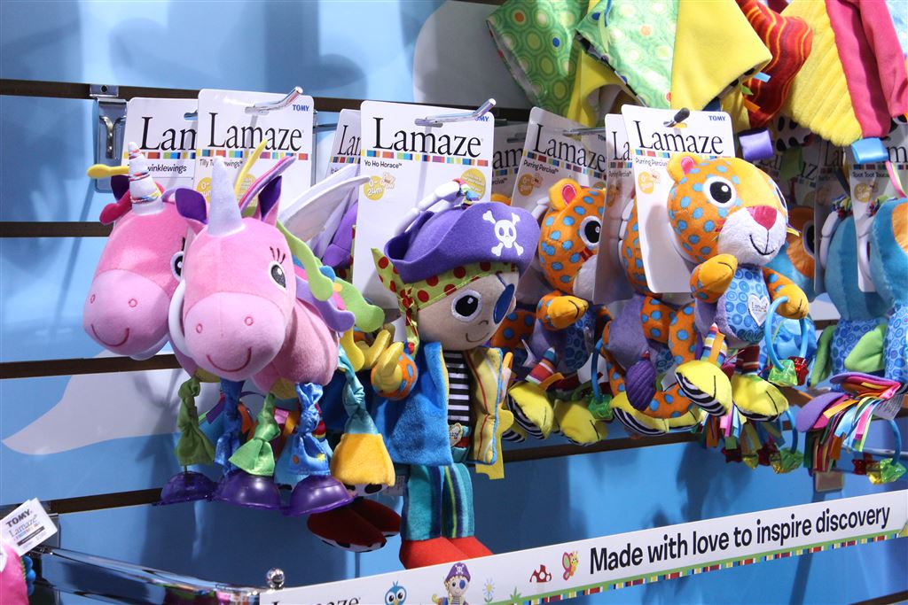 Lionel, der Leopard und Tommy der Tukan sind Stofftiere für die Kleinsten. Sie rascheln, Quietschen und haben verschiedene Stoffe und Bänder. Sie können am Bett oder Kinderwagen befestigt werden. Hanni das Häschen und Theo dem T-Rex sind Stoffbücher für den Kinderwagen, Babyschale oder am Bett zu befestigen. Es können unterschiedliche Stoffe erfühlt werden, die Spielfiguren Hanni und Theo rascheln und können auf Seite 1 ihres Buches ins Bett gesteckt werden. Diese Sachen erscheinen unter der Produktlinie Lamaze Play & Grow.