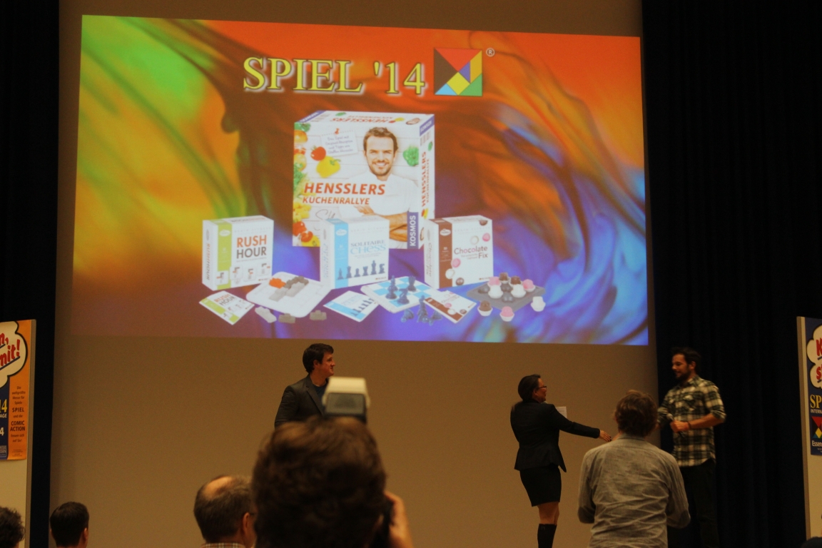 Vom 16. – 19. Oktober öffnet wieder die SPIEL’14 in Essen. In diesem Jahr expandiert die Messe auf eine Gesamtausstellungsfläche von 58000 m². 832 Aussteller aus 41 Nationen präsentieren mehr als 850 Neuheiten oder Weltpremieren. Wir haben einige Impressionen der Neuheiten für Euch in Bilder festgehalten. Prominenten Besuch gab es auch. Steffen Henssler der bekannte Fernsehkoch stellte sein Spiel “Hensslers Küchenrallye” bei Kosmos vor. Norbert Heiserkamp der den Ralphy bei “der 7bte Zwerg” spricht, war für die Vorstellung der gleichnamigen Spiel bei Pegasus vor Ort. Matthias Steiner der Olympiasieger, Welt und Europameister im Gewichtheben stellte die Denksportspiele (Rush Hour, Solitär Schach und Chocolate Fix) aus dem Hause HCM-Kinzel vor.