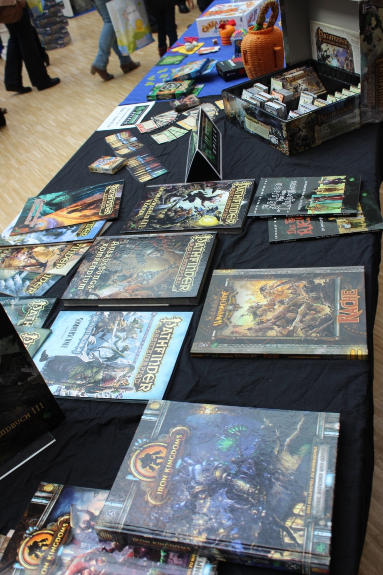Vom 16. – 19. Oktober öffnet wieder die SPIEL’14 in Essen. In diesem Jahr expandiert die Messe auf eine Gesamtausstellungsfläche von 58000 m². 832 Aussteller aus 41 Nationen präsentieren mehr als 850 Neuheiten oder Weltpremieren. Wir haben einige Impressionen der Neuheiten für Euch in Bilder festgehalten. Prominenten Besuch gab es auch. Steffen Henssler der bekannte Fernsehkoch stellte sein Spiel “Hensslers Küchenrallye” bei Kosmos vor. Norbert Heiserkamp der den Ralphy bei “der 7bte Zwerg” spricht, war für die Vorstellung der gleichnamigen Spiel bei Pegasus vor Ort. Matthias Steiner der Olympiasieger, Welt und Europameister im Gewichtheben stellte die Denksportspiele (Rush Hour, Solitär Schach und Chocolate Fix) aus dem Hause HCM-Kinzel vor.