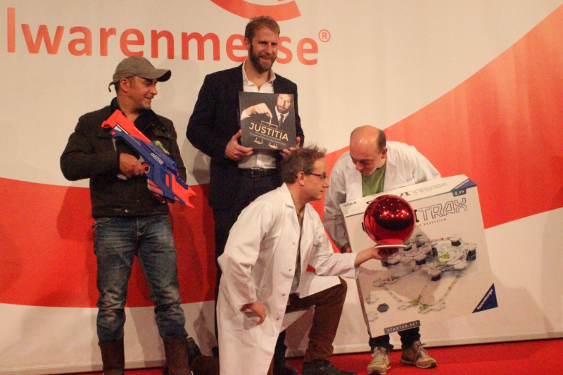 Die Entertainer Bernhard Hoëcker und Wigald Boning stellten für Ravensburger Gravitrax vor. GraviTrax – Das Spiel mit der Schwerkraft : Die Physik folgt ihren eigenen Regeln. Im September bringt Ravensburger ein anspruchsvolles Kugelbahn-System auf den Markt, das mit den Gesetzen der Schwerkraft spielt. Kinder wie Erwachsene sind dabei immer wieder aufs Neue herausgefordert, aktionsreiche Streckenverläufe zu planen, auszuprobieren und zu realisieren. Durch Magnetismus, Kinetik und Gravitation bahnen sie so den Kugeln einen Weg ins Ziel.