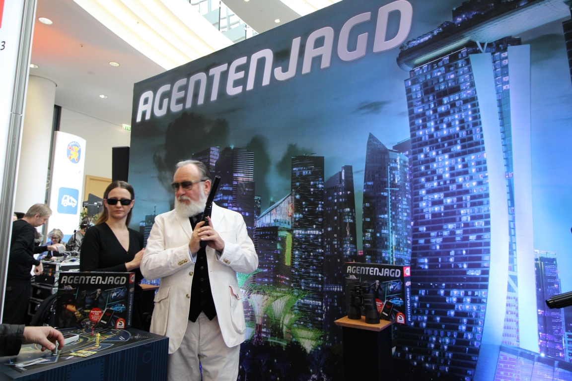 IMG_5486 Schmidt Spiele schickt Friedrich Liechtenstein spielerisch auf „Agentenjagd“. Agentenjagd ist Deduktionsspiel ist für Spieler ab acht Jahren und kann nur in Verbindung mit einem vorhandenen Smartphone gespielt werden. Die Spieler versuchen den Spion mithilfe der App zu finden und zu enttarnen.