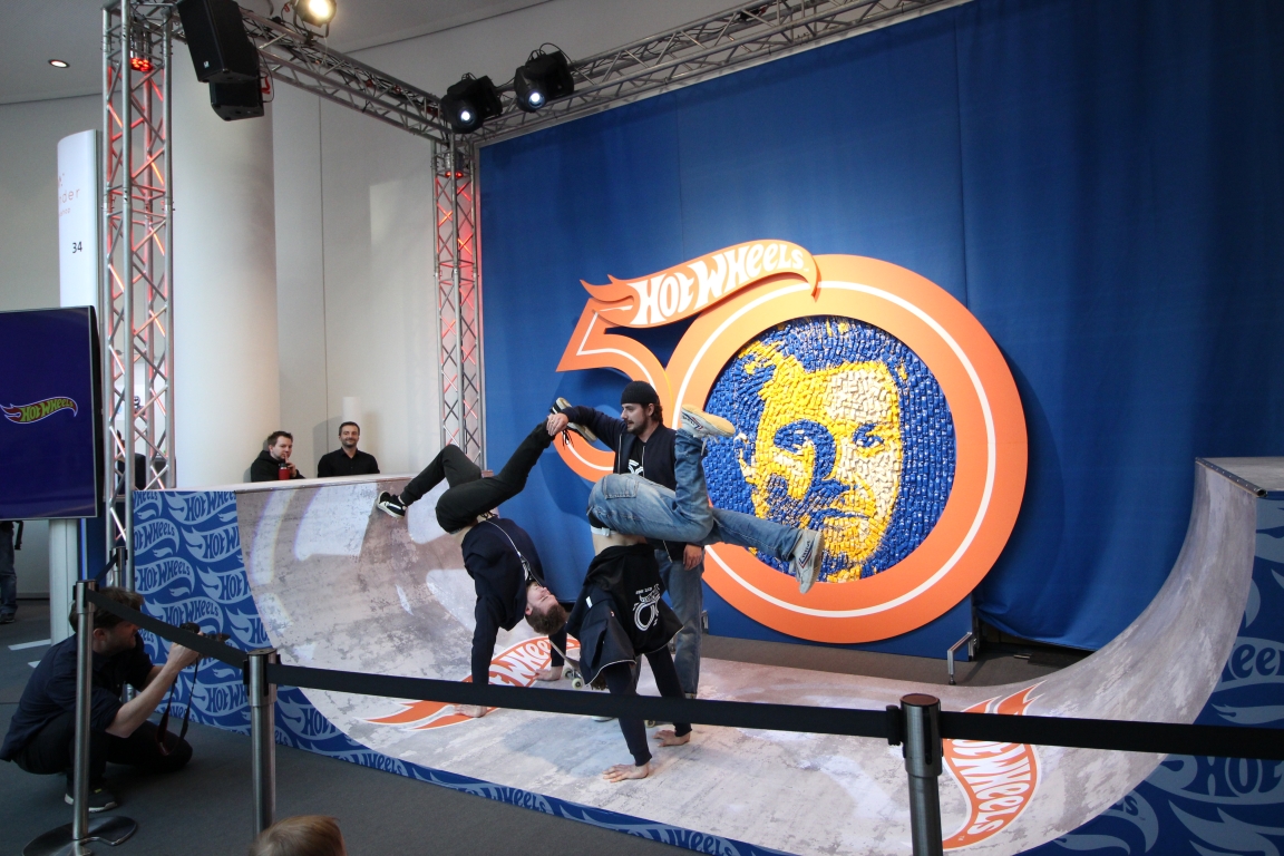 IMG_4951 Mattel präsentiert zum 50. Hot Wheels-Geburtstag eine echte Halfpipe mit Showeinlage.Nico Rosberg wird Markenbotschafter für Hot Wheels. „Hot Wheels kenne ich bereits aus meiner Kindheit. Und genau hier entdeckte ich auch als kleiner Junge meine Begeisterung für Autos", sagt Nico Rosberg. „Mit dieser besonderen Partnerschaft möchte ich Kinder inspirieren, dass sie sich jeder Herausforderung stellen und mit ihren Hot Wheels Autos ihre Kreativität und Experimentierfreudigkeit entdecken.“