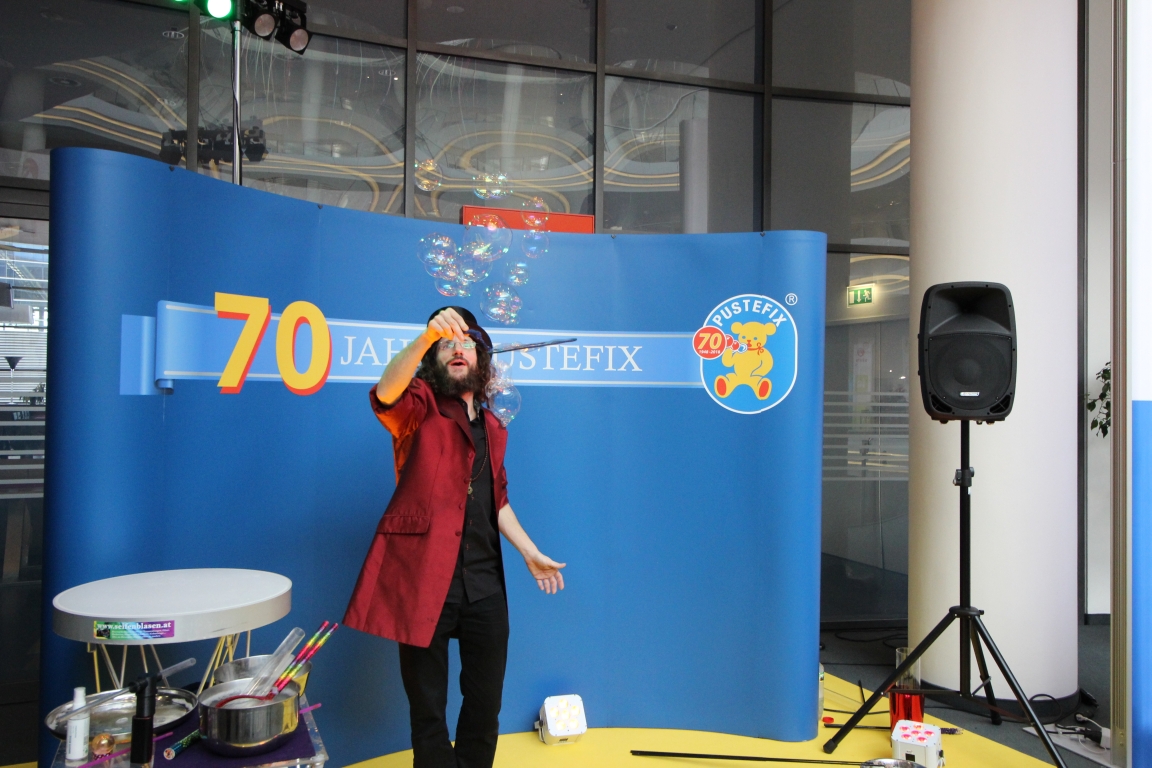 IMG_4869 Die diesjährige Neuheitenschau wurde durch eine 10 minütige Trommelshow eröffnet. Roland Peil, Percussionist der Band "Die fantastischen Vier" trommelte den Song "Heroes in Toyland"