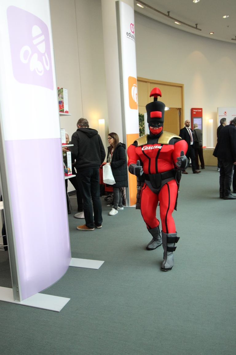 IMG_4869 Die diesjährige Neuheitenschau wurde durch eine 10 minütige Trommelshow eröffnet. Roland Peil, Percussionist der Band "Die fantastischen Vier" trommelte den Song "Heroes in Toyland"