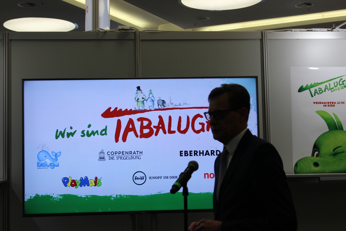 IMG_5246 Bei Tabaluga Enterprises und seinen Lizenznehmern zeigt Peter Maffay erstmals exklusive Ausschnitte aus dem ersten Tabaluga-Kinofilm, der im Dezember erscheint.