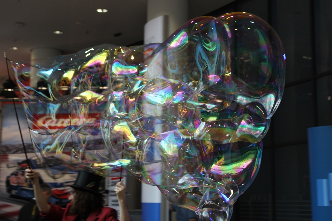 IMG_4869 Die diesjährige Neuheitenschau wurde durch eine 10 minütige Trommelshow eröffnet. Roland Peil, Percussionist der Band "Die fantastischen Vier" trommelte den Song "Heroes in Toyland"