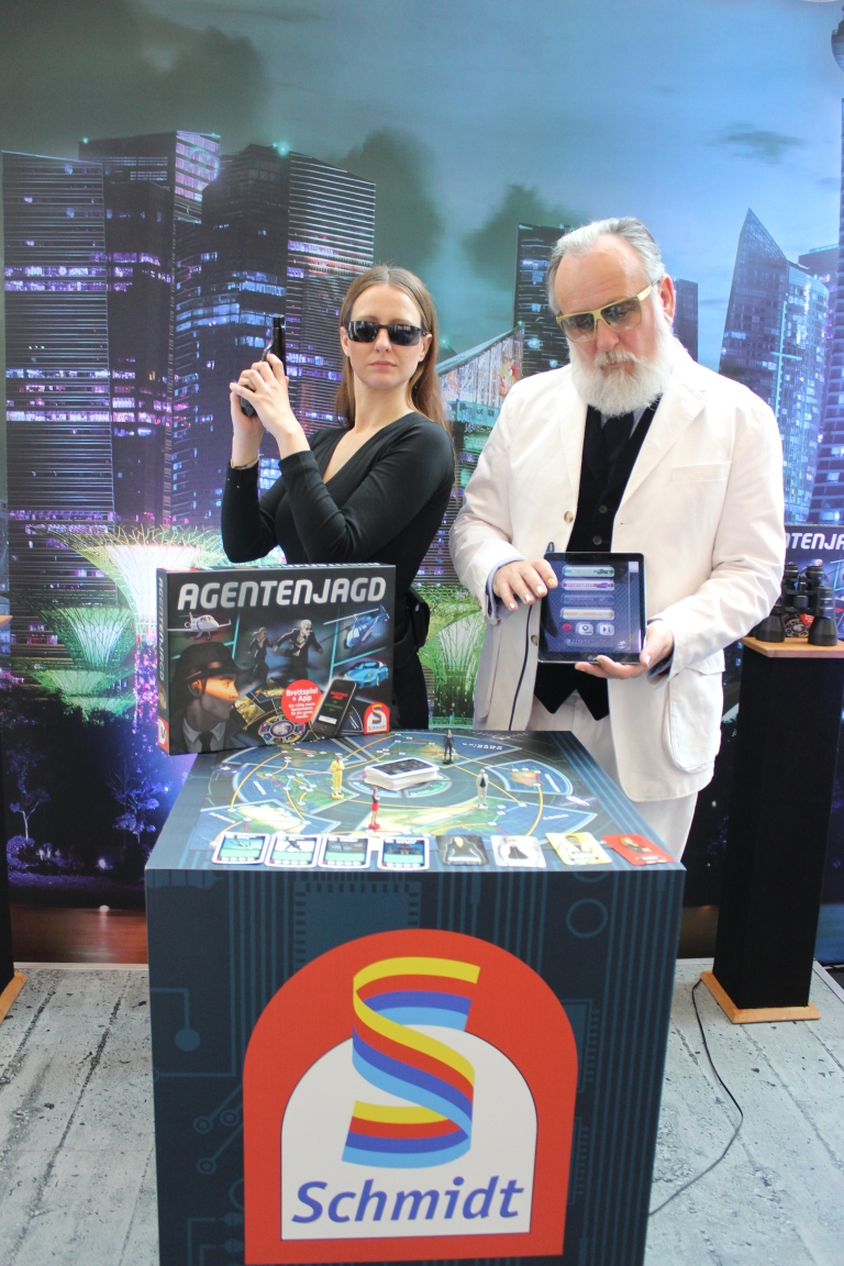 IMG_5486 Schmidt Spiele schickt Friedrich Liechtenstein spielerisch auf „Agentenjagd“. Agentenjagd ist Deduktionsspiel ist für Spieler ab acht Jahren und kann nur in Verbindung mit einem vorhandenen Smartphone gespielt werden. Die Spieler versuchen den Spion mithilfe der App zu finden und zu enttarnen.