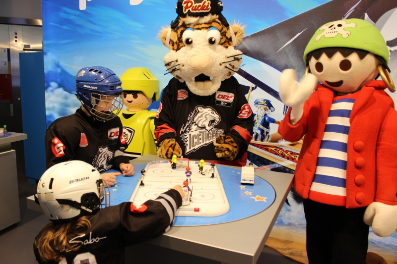 img_5932 Playmobil hatte am Stand das Maskottchen Pucki der Nürnberger Eishockymannschaft. Es wurde eine Runde auf dem neuem Eishockyspielfeld gespielt. Des weiteren stellte Playmobil die neuen Piratenwelt und das neue Puppenhaus sowie den Playmobil Porsche vor.