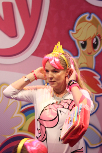 img_0400 Für Hasbro stellte Mirja Boes My Little Pony in zwei Auftritten vor, dafür hatte sie hilfreiche Unterstützung von zwei kleinen Kennerinnen. 1984 erschienen die ersten My Little Ponys. Sie haben sich bis heute stark verändert.