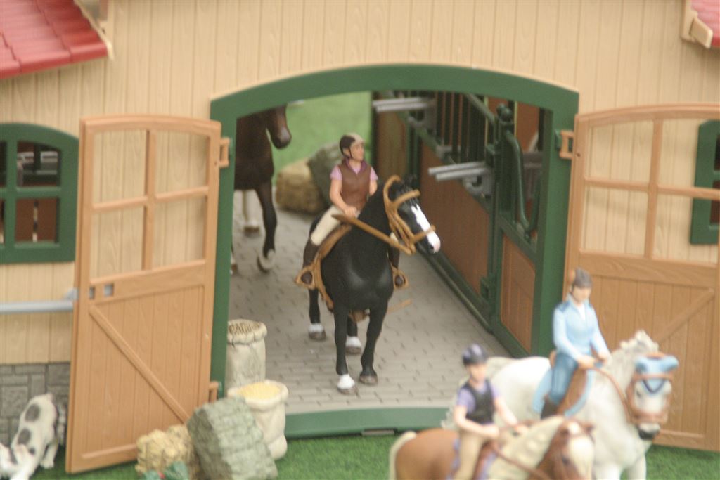 _MG_4793 Das Kinderzimmer wird zum Pferdehof von Schleich. Die erste Themenwelt von Schleich dreht sich um die klassische Produktlinie Farm Life. Ab April erscheinen  24 neue Pferdezubehörartikel wie z.B. Halfter, Stroh & Heuballen und ein Reitparcours. Ab September wird es dann einen naturgetreu gestalteten Pferdehof geben.