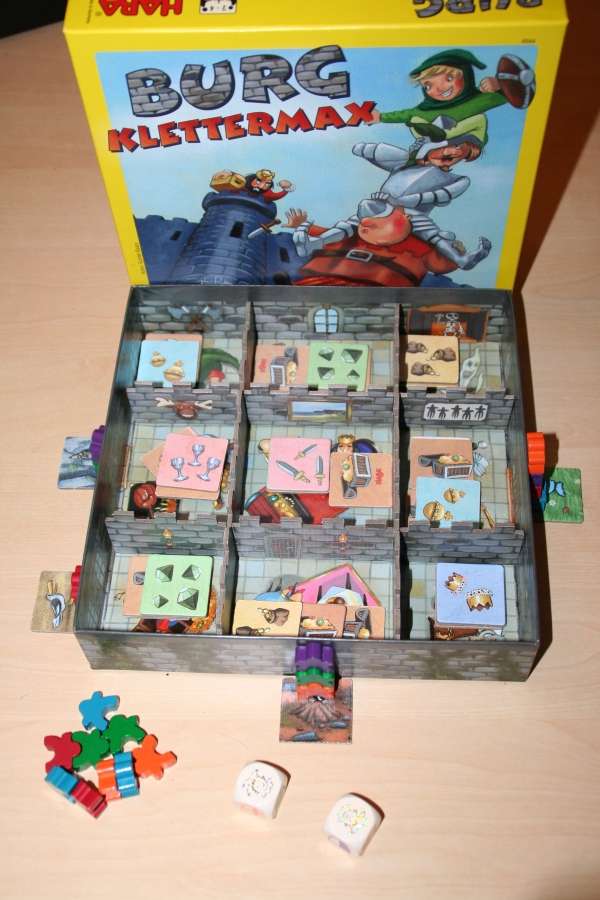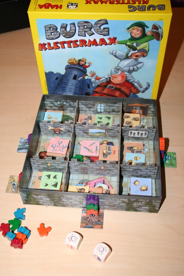 Burg Klettermax ist ein tolles Kinderspiel, was die Feinmotorik und das erste “Zählen und Rechnen” fördert. Das Spiel ist reines Würfelglück, da aber niemand leer ausgeht, ist es egal was man würfelt. Das macht das Spiel grade für Kinder interessant und spannend, da keiner leer ausgeht und so kein Neid auf das Würfelglück des anderen entsteht. Unsere Testspieler waren 4 Jahre alt und hatten anfangs Schwierigkeiten beim Schnippen. Dies mussten sie erst etwas üben und manchmal auch mehrmals hintereinander versuchen, bis es ihnen gelungen ist. Doch dies änderte nichts daran, dass sie sehr viel Spaß dabei hatten und es gerne lange und ausgiebig gespielt haben.