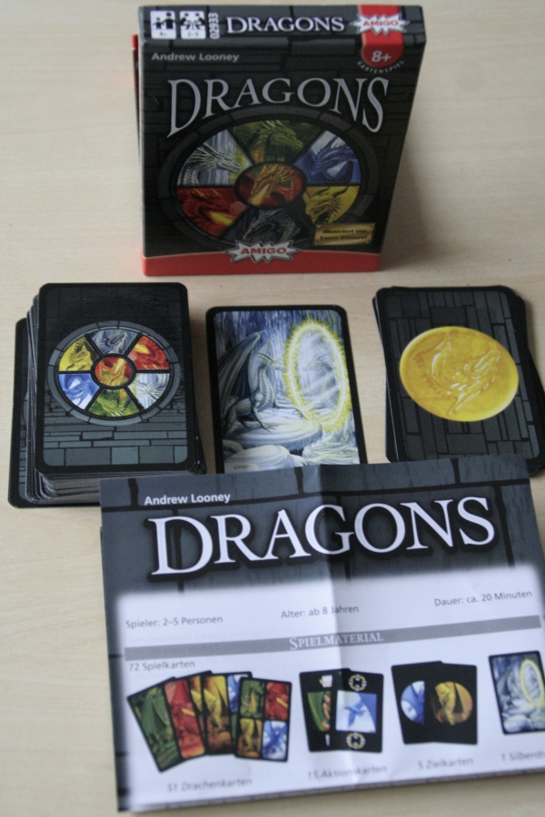 Dragons ist ein schönes und schnelles Kartenlegespiel. Durch die einfachen Regeln finden die Spieler sehr schnell in das Spiel. Im Gegensatz zu anderen Kartelegespielen gibt es durch die Aktionskarten eine schöne Möglichkeit das Spiel durcheinander zu bringen, hierdurch ist jedes Spiel anders. Unserer Testgruppen hatten sehr viel Spaß. Besonders zu erwähnen sind die tollen Zeichnungen von Larry Elmore. Alleine hierfür lohnt sich der Kauf.