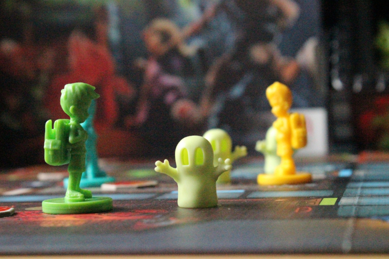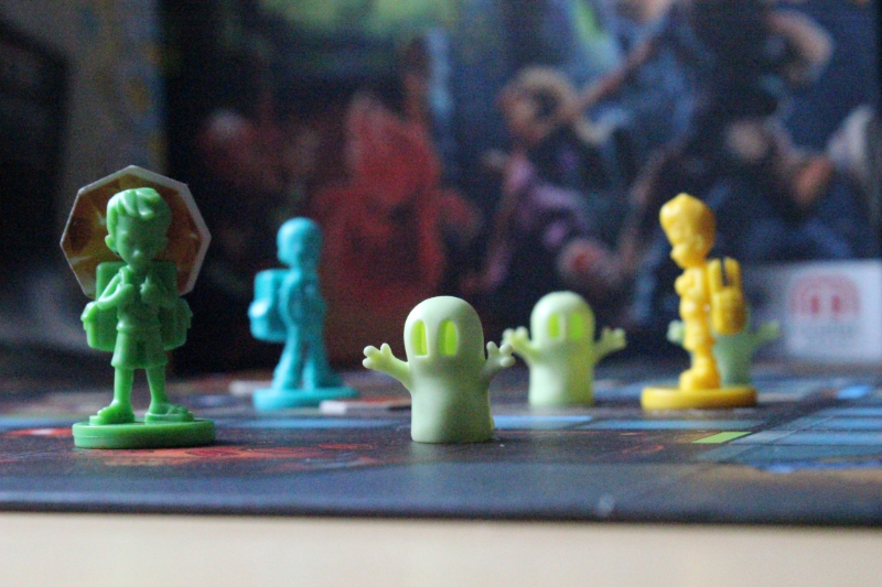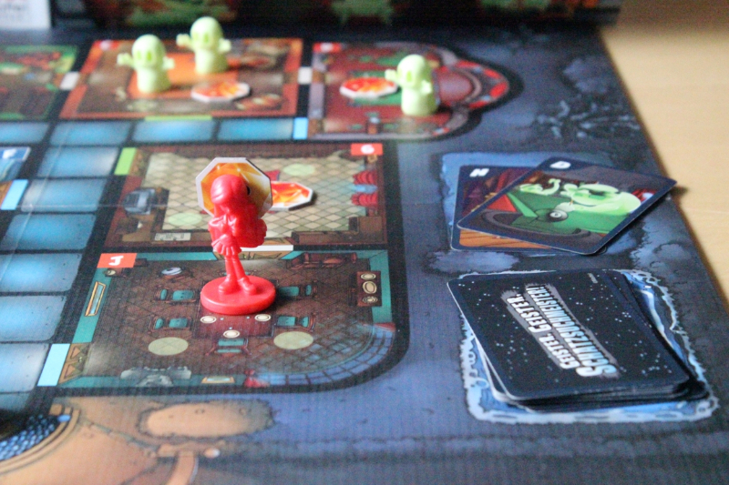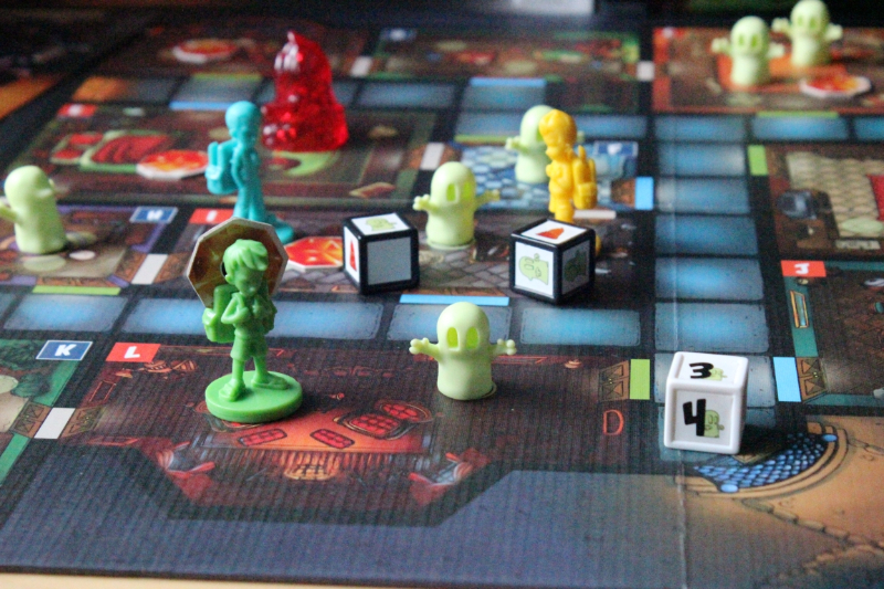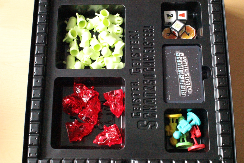 Es gehört ein wenig Glück mit zum Spiel, denn bei jeden Würfelwurf, außer der 6, muss eine Karte aufgedeckt werden, in welchem Raum ein neuer kleiner Geist auftaucht. Sobald der dritte grüne kleine Geist in einen Raum platziert werden würde, erscheint ein großer roter Spukgeist. Steht in diesem Raum schon ein roter Spukgeist, geht es alphabetisch weiter und der kleine Geist kommt in den nachfolgenden Raum. Stehen dort auch schon zwei grüne kleine Geister, taucht dort auch ein große roter Spukgeist auf.