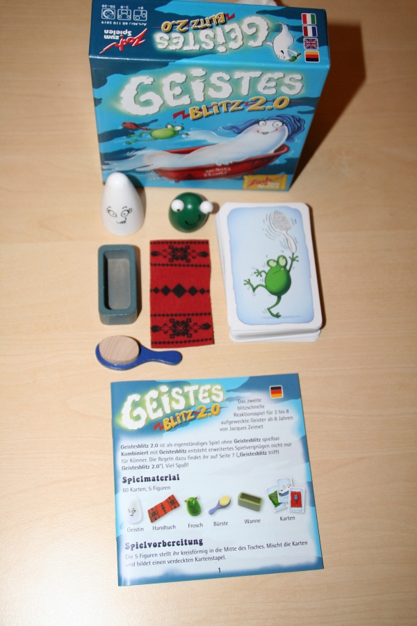 Geistesblitz 2.0 ist ein sehr schönes schnelles Partyspiel. Man kann es sehr gut mit vielen, aber auch mit wenigen Spielern spielen. Es fördert bei jung und alt die Konzentration, Kombinationsgabe und das Reaktionsvermögen. Es macht allen Altersgruppen sehr viel Spaß und es wird nie langweilig. Es gibt drei Varianten die man auch untereinander kombinieren kann. Das Spiel Geistesblitz kann man mit Geistesblitz 2.0 kombinieren, hierzu existieren extra Regeln.