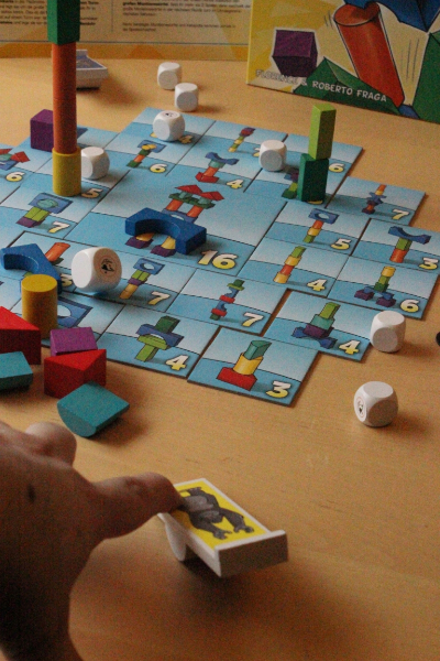 Der Turmbauer dreht die Sanduhr um und beginnt auf den Karten in der Tischmitte den abgebildeten Turm nach zu bauen. Die Saboteure dürfen nun ihre Katapulte mit den Munitionswürfeln auf die Türme abschießen und so versuchen diese zu zerstören. Fallen zwei Würfel, so dass die Bombe (Gesicht) zu sehen ist, darf ein Spieler mit der Faust auf den Tisch hauen und so ein “Erdbeben” auslösen. Es darf jede Runde nur ein Erdbeben ausgelöst werden. Die Saboteure dürfen nicht den Turmbauer behindern oder gegen den Tisch stoßen. Der Turmbauer darf seinen Turm nicht abschirmen, die Geschosse nicht blockieren oder fangen. Er darf ein Turmplättchen auf den ein Würfel liegt nicht bebauen. Er darf jederzeit einen Turm aufgeben und die Bausteine für einen neuen verwenden. Wenn ein Turm nach Ablauf der Sanduhr noch steht und richtig gebaut wurde, bekommt der Spieler dieses als Siegpunkte und legt es vor sich ab.
