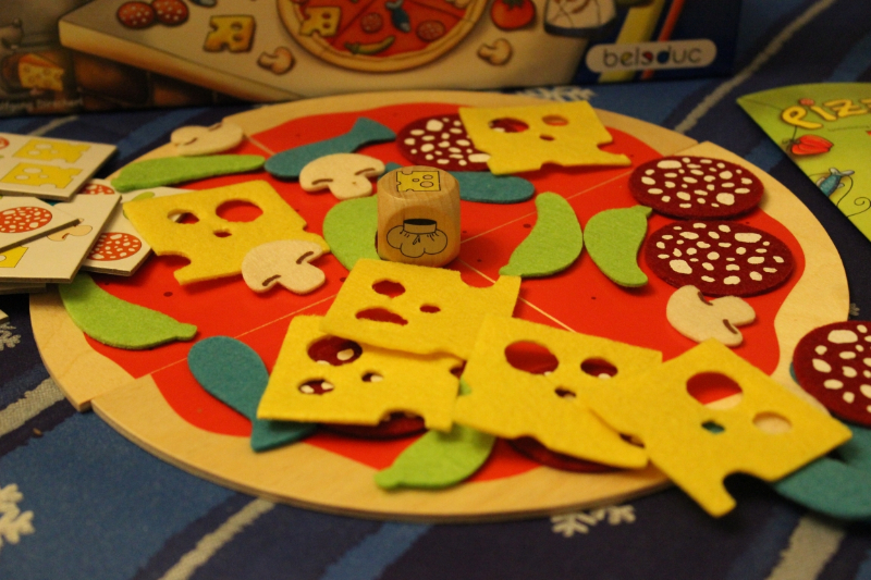 Der jüngste Spieler beginnt und es wird im Uhrzeigersinn gewürfelt. Nun wird geschaut ob man die angezeigte Zutat für seine Pizza braucht und nimmt sich diese dann aus der Mitte. Dann dürfen dies auch alle anderen. Es wird reihum gewürfelt und die Pizzen belegt.