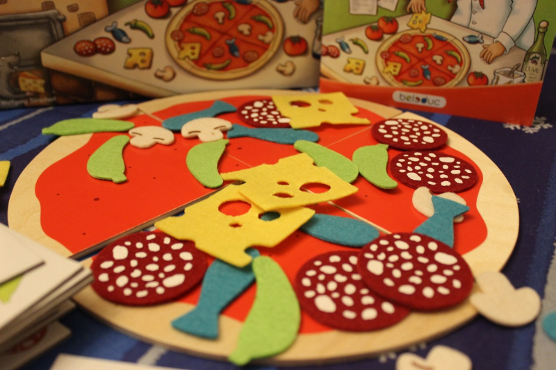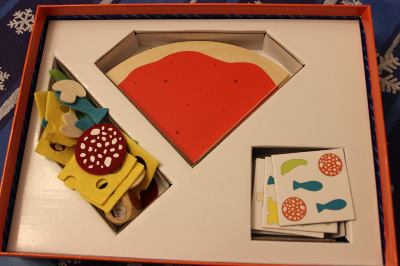 Das Spiel ist ein super Lernspiel für Kinder. Man muss nachdenken, suchen und kann Farben und Formen lernen. Das Material des Spiel hat eine sehr hohe Qualität. Die Zutaten sind aus festem Filz und die Pizzaböden aus Holz, ebenso sind die Karten aus abwaschbarer Pappe. Das Spiel ist zu empfehlen ab einem Alter von 2,5 Jahren. Ich habe das Spiel mit Erwachsenen, sowie mit einer Gruppe Kinder im Alter von 3 – 4,5 Jahre gespielt und alle fanden das Spiel sehr gut und interessant gestaltet.