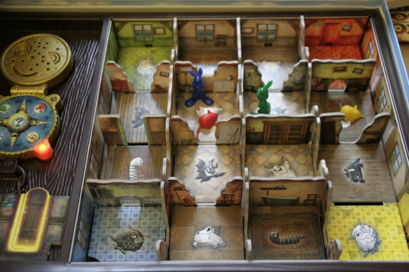 Anfangs sieht man noch keine Wände bzw Räume, diese bauen sich erst nach und nach auf. Immer wenn man einen Weg passieren kann, steckt man das passende Wandteil in den Spielplan. Auf der Suche nach der Zaubertür oder Hubi kann man, die Fragezeichentaste drücken, um so die Tiere in den Räumen zu befragen und so Hinweise zu bekommen. Meist geben einem die Tiere von sich aus Hinweise auf Hubi. Wenn man einen Durchgang wählt, der sich bereits auf dem Spielfeld befindet, darf man sich erneut fortbewegen. Dies ermöglicht das man mit seine Figur bis zu 2 Räume betreten bzw durchqueren kann, dies kann beim Fangen von Hubi von Vorteil sein.