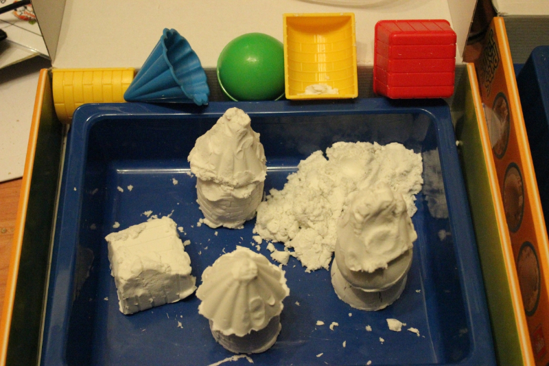 Das Aufräumen gestaltet sich sehr einfach, falls mal was neben die Sandschale gefallen ist, kann man es einfach wieder aufsammeln, indem man etwas vom Sand nimmt und so die daneben gefallenen Reste zusammendrückt. Die Kinder waren von der Vielfalt des Sands begeistert und konnten sich lange damit beschäftigen.