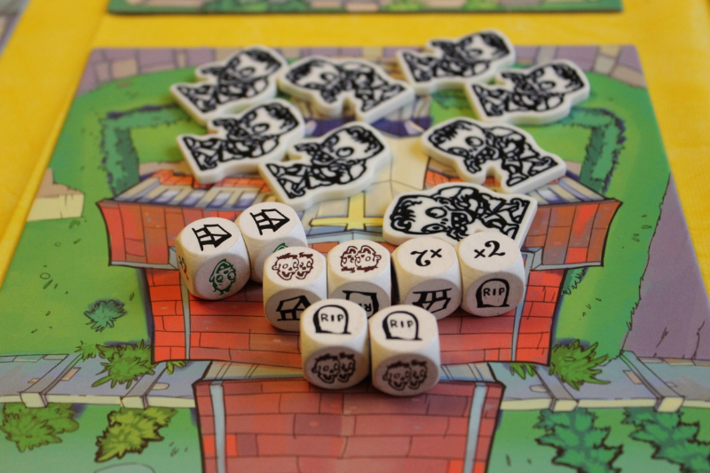 Die Spieler würfeln nacheinander. Damit der Wurf gewertet werden kann, müssen Zombies der gleichen Farbe, Paarweise gewürfelt werden. Jede Würfelrunde muss ein Zombie rausgelegt werden können, sonst hat man den Durchgang verloren. Ebenso müssen Grabsteine als Paar gewürfelt werden, damit der Wurf zählt. Des Weiteren gibt es noch das Verdoppler (2x) und das Haussymbol. Am Ende kann man je nach Ergebnis Zombies auf den Friedhof legen oder einen Spieler zuschieben, wenn man Häuser und Grabsteine paarweise rausgelegt hat.