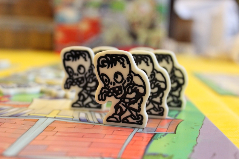 Jeder Spieler bekommt eine Bildtafel und der Friedhof wird in die Mitte gelegt. Jeder bekommt eine Anzahl von Zombies, diese variiert nach Spieleranzahl.