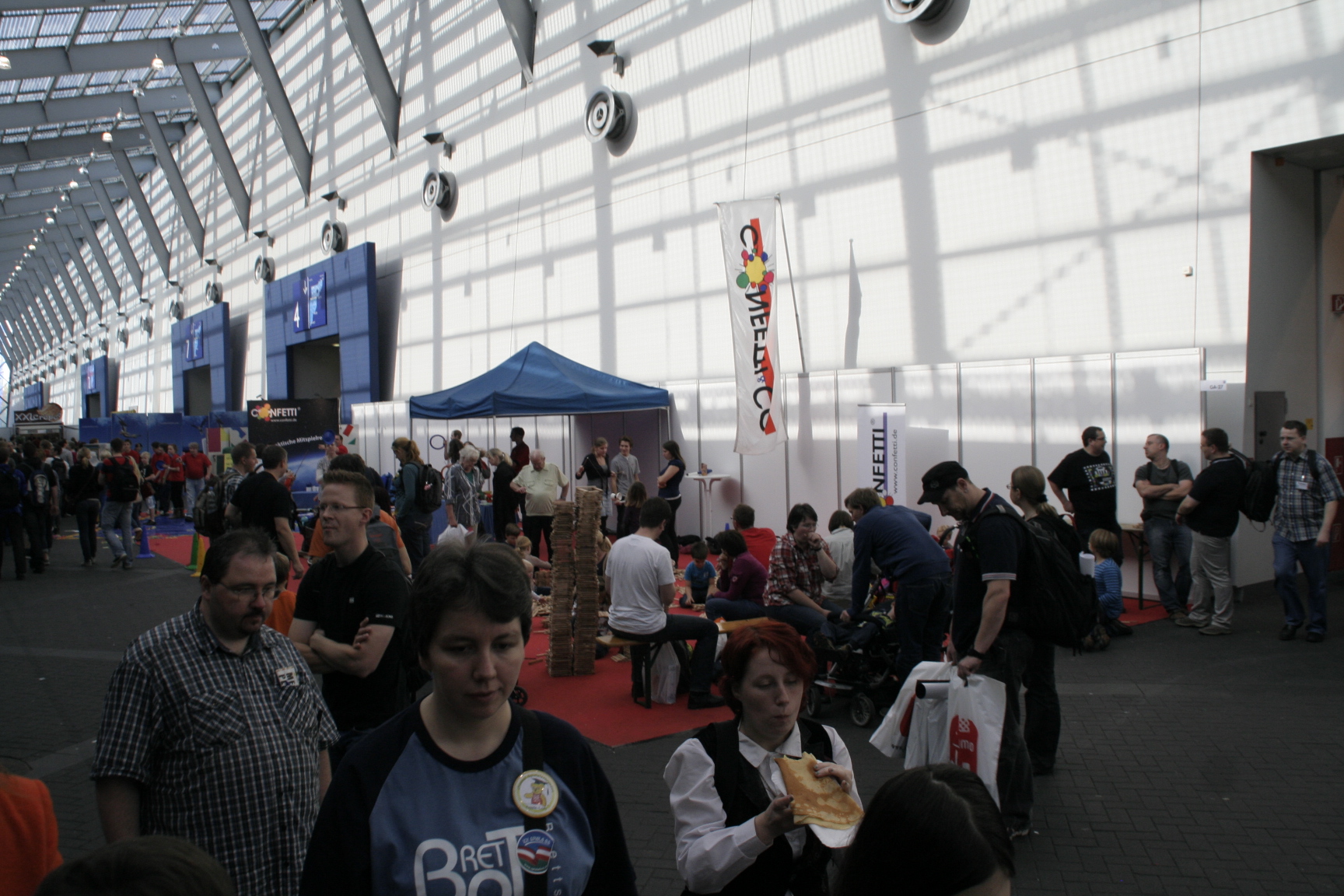 Einlass in die Messe Wie seit Anbeginn der Messe drückten sich die Besucher auch dieses Jahr vor der Öffnung die Nase an den Scheiben platt. Sobald als sich die Türen öffneten, rannten die Besucher in die Messe, um die begehrten Plätze an den Spieltischen zu bekommen.
