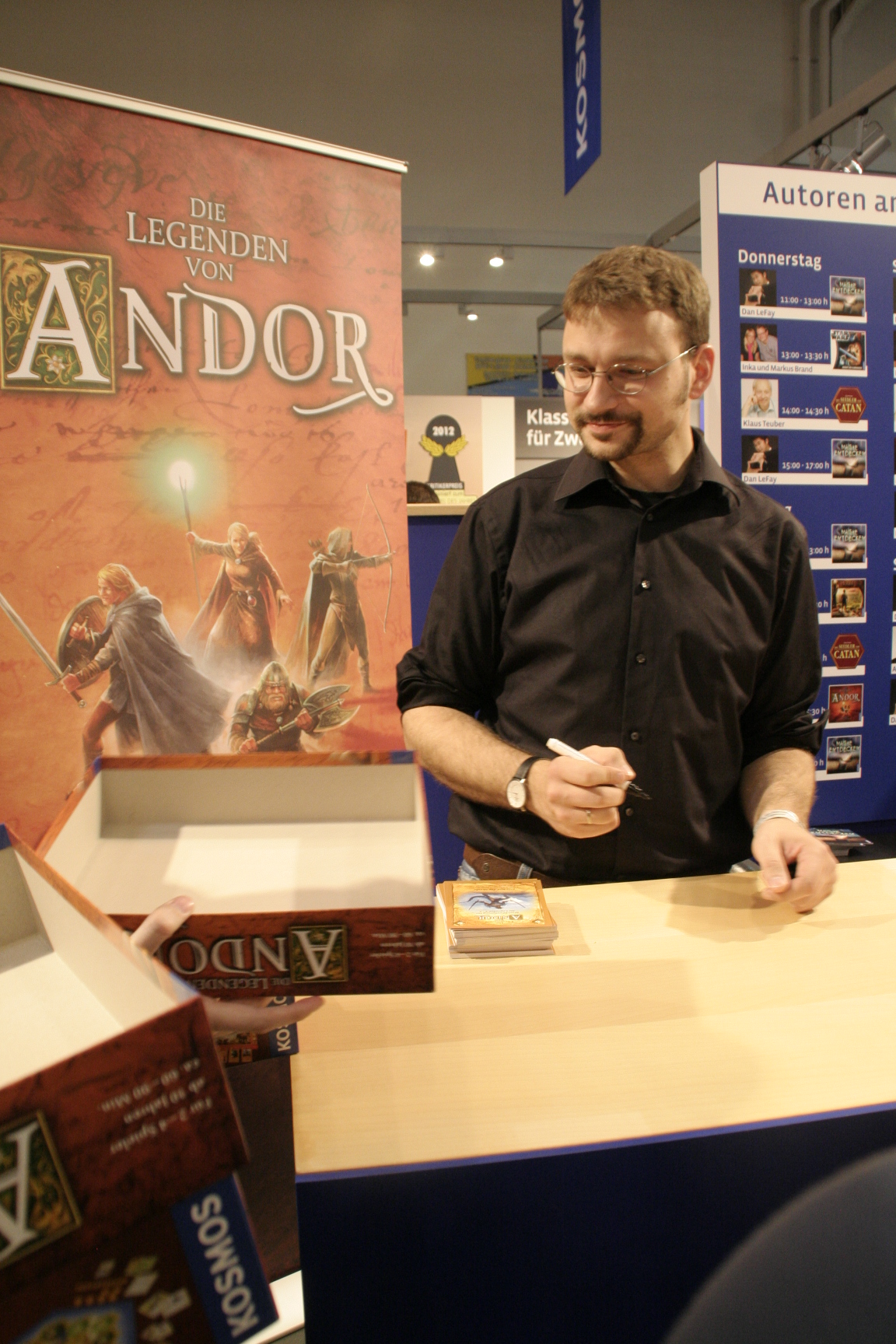 Autogrammstunde Michael Menzel Die Autogrammstunde von Michael Menzel fand an zwei Tagen am Stand vom Kosmos statt. Er signierte sein Spiel “Die Legenden von Andor” und verteilte hierzu auch noch eine exklusive Legendenerweiterung an die Besucher.