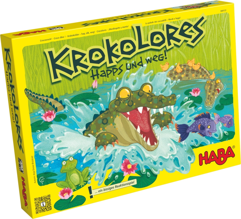 Krokolores Habbs und weg ist ab 4 Jahren für 2-4 Spieler. Es ist ein Reaktionsspiel, Spieldauer sind ca 15 Min.
