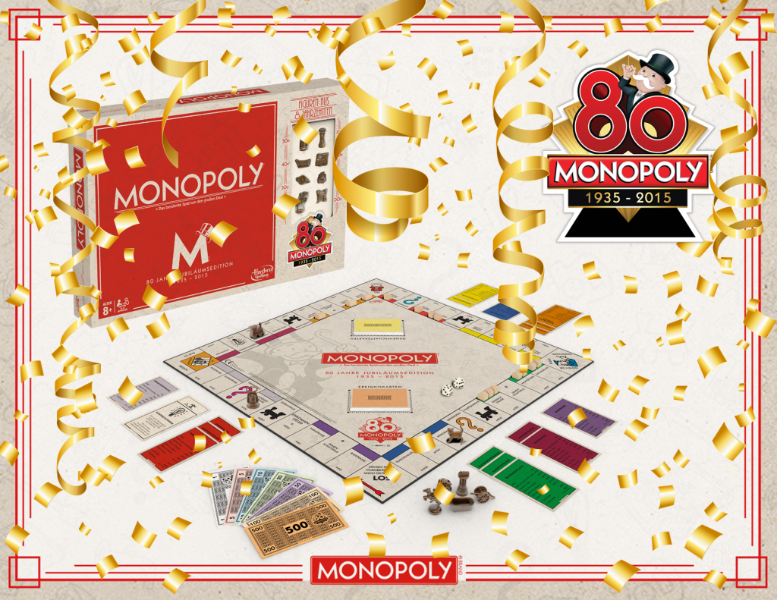 Monopoly, das erfolgreichste und bekannteste Brettspiel der Welt, wird 80 Jahre alt. Hasbro feiert das  Jubiläum mit einer Sonderedition des Spiels im stylischen Vintage-Look, einer Fan-Aktion zur Mitgestaltung der „World-Edition“ und einer Weltmeisterschaft, für die bei nationalen Ausscheidungsturnieren auch ein Teilnehmer aus Deutschland ermittelt wird.