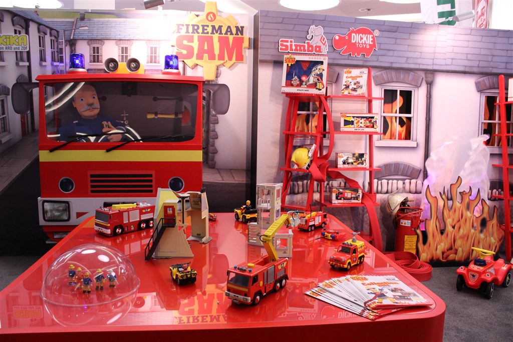 IMG_2590 Feuerwehrmann Sam von Simba Dickie Group. Es kommen Spielsets zur TV-Serie raus. Die Zielgruppe richtet sich an 3-5 Jährige Jungen. Feuerwehrmann Sam wird in 48 Sprachen und in über 100 Ländern als TV- Serie ausgestrahlt. In den UK verkauften sich über 1 Mio Bücher von Feuerwehrmann Sam.