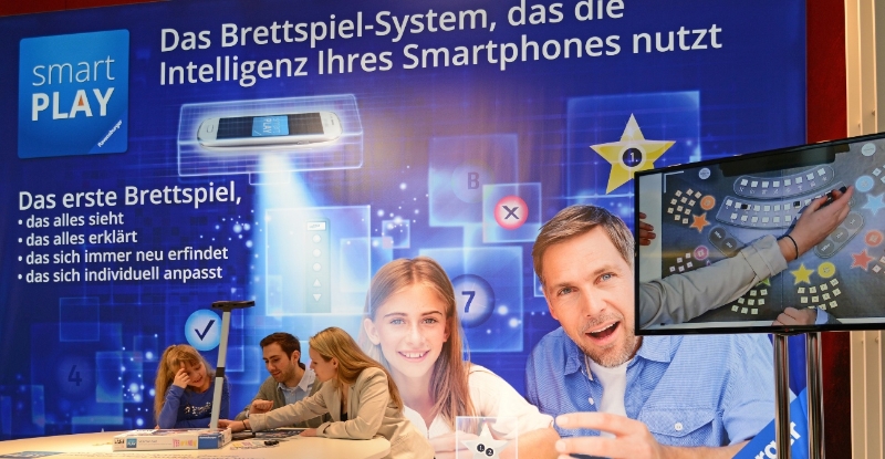 smartplay Ravensburger bringt mit smart Play revolutioniert des Brettspiel, das neue Brettspiel-System in Verbindung mit einem Smartphone mit spezieller App. Die App reagiert auf Aktionen und das Geschehen auf dem Spielbrett. Zudem schafft die App eine lebendige Atmosphäre durch Sprache, Geräusche und Musik. Die App erklärt optional Schritt für Schritt die Spielregeln. Das Smartphone wird in eine speziellen SmartPlay Halterung eingelegt die über das Spielbrett gerichtet ist. Die Smartphone-Kamara erkennt so alle Situationen und Aktionen im Spiel, Spielfiguren, Würfelergebnisse usw. werden erkannt und die App reagiert durch Sprache, Musik & Geräusche darauf. Die speziell entwickelte Bilderkennungssoftware “Visual Recognition” und die darauf aufbauende App läuft auf allen gängigen Smartphones mit iOS und Android. Es kommen drei Starterset´s  ab September raus Yes or kNOw für 2-6 Spieler ab 8 Jahren, King Arthur für 1-4 Spieler ab 8 Jahren und das magische Museum für 1-4 Spieler ab 8 Jahren. Die Startersets werden für ca 50 € in den Handel kommen und ein Spiel ohne Halterung für ca. 40 €