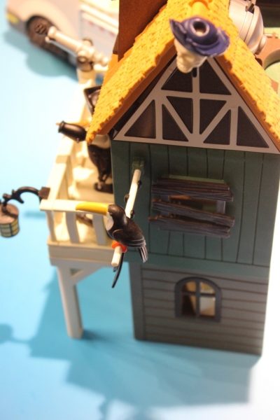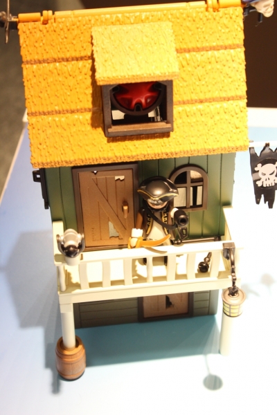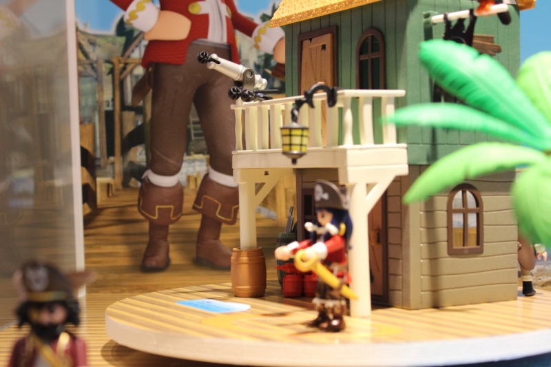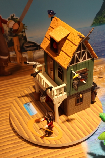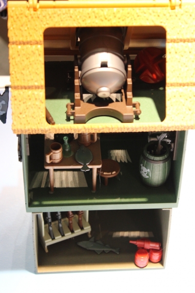 Rubys Heimat ist die Schwarzpulver-Insel. img_7058 Ihre Getarnte Piratenfestung verwandelt sich vom unscheinbaren Haus in eine schwerbewaffnete Bastion mit Riesen-Kanone! In der Piraten-Höhle hat ein Bösewicht Waffen und Munition versteckt. Ob es ihm gelingt, mit seinem Pulverfass den wertvollen „Goldenen Teekessel“ in die Luft zu sprengen? Auch der Erzfeind der SUPER 4, Sharkbeard mit dem ausziehbaren Teleskopauge, führt nichts Gutes im Schilde…