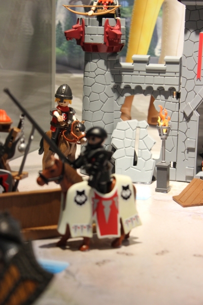 Wie es sich für einen echten Prinzen gehört, ist Alex, der Anführer der SUPER 4, img_7073 auf der Königstribüne im Ritterland zu finden, zusammen mit Vater König Kenric und Ritter Sir Gareth. Die Tribüne dient u.a. als Geheimversteck für den „Goldenen Teekessel“ oder Waffen für siegreiche Ritterturniere. Doch auch Rypan – Wache des Schwarzen Barons ist bestens gerüstet und bereit, den Kampf aufzunehmen. Zusätzlich unterstützt der mächtige Schwarze Koloss die Machenschaften des Super4-Widersachers in der Burg des Schwarzen Barons zum Mitnehmen. Mit zahlreichen Waffen, ausgeklügelten Abwehrmechanismen und einem Mauerdurchbruch garantiert die Burg jede Menge Spiel-Action. Besonders praktisch: Der komplette Inhalt passt in die Burg, die am Tragegriff überallhin mitgenommen werden kann. Mit Königswache Sir Ulf und Prinzessin Leonora sind weitere bekannte Charaktere mit von der Partie.