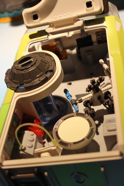 Die futuristische Stadt Technopolis ist das Zuhause des genialen Agent Gene. img_7076 Wenn er nicht gerade an Wunderwaffen tüftelt, sitzt Gene am Steuer des Techno Chamäleon. In ihrem extrem wandelbaren Fahrzeug reisen die vier Helden fahrend oder fliegend zwischen den Welten umher. Zudem dient es als Einsatzzentrale oder – dank Geheimkanone und weiteren Waffen – auch zur Abwehr von Bösewichten. Neben dem gerissenen Wissenschaftler Dr X macht Erzfeind Sharkbeard den SUPER 4 auch in Technopolis das Leben schwer, denn er hat den starken Cleano-Roboter in seine Gewalt gebracht. Zum Glück unterstützt der Skyjet mit Transformationsfunktion das Team und kann sogar im Chamäleon mitgenommen werden.
